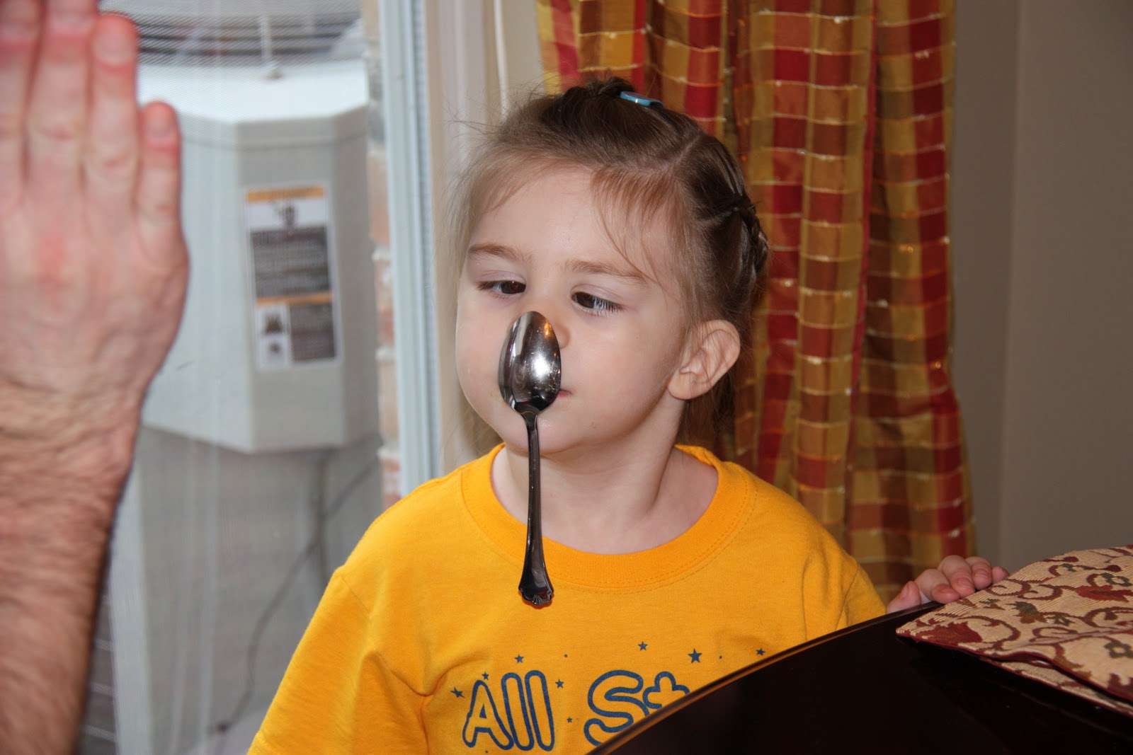 Well done!! Don't look at the spoon for too long, Sophia!! ;)