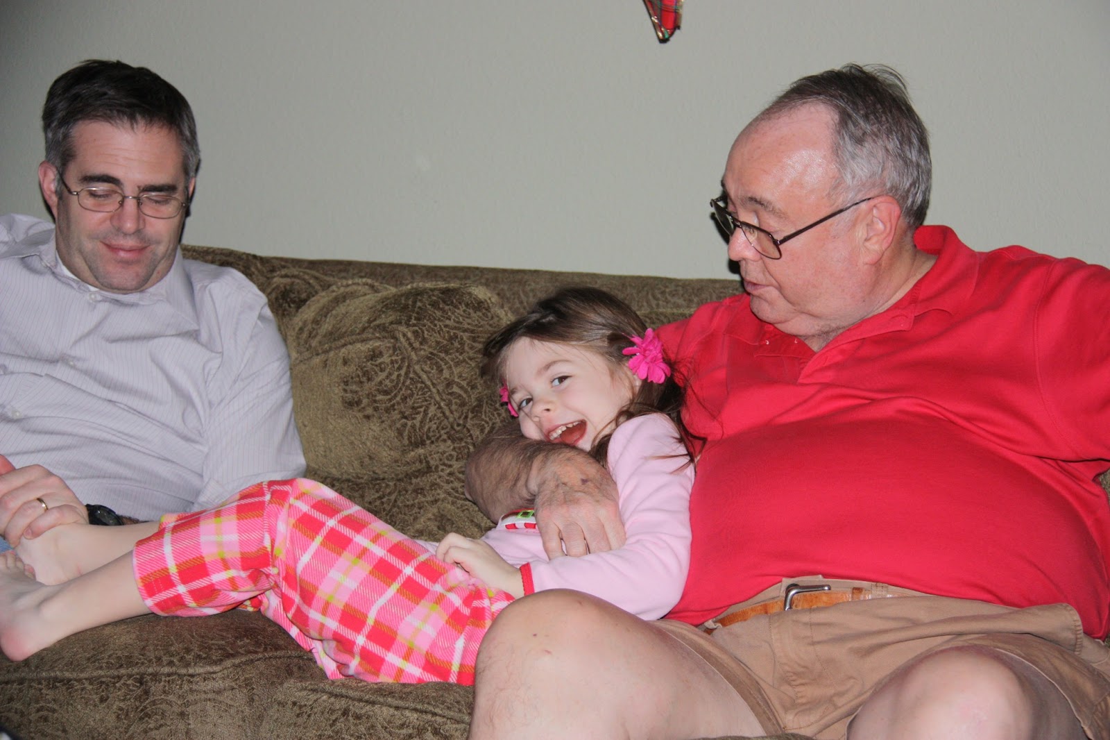 Russell's mom and dad flew down this Christmas to see us, I mean Sophia. They arrived on the 20th but we didn't get to see them until the 21st. They stayed with Russell's brother and sister in law who live in Haslet.